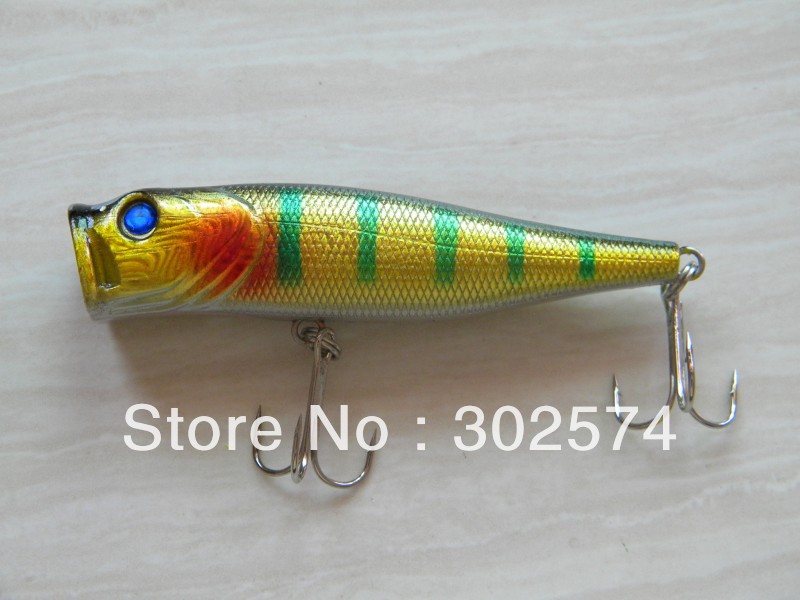 6pcs/lot 6 colours Popper fishing tough bait 9CM 14G four# hooks tough correct water plastic lures free transport