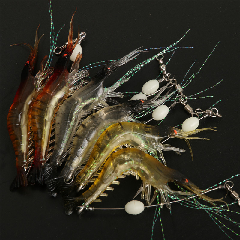6Pieces-10cm-6g-with Hook Noctilucent Smooth Silicone Simulation Prawn Shrimp Fly Fishing Entice Bait
