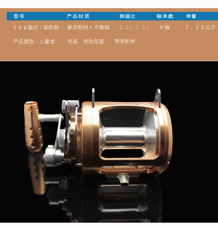 Best fishing reels golden colour 50W 9BB 21kg /pcs Huge Video game deep sea saltwaer fishing equipment