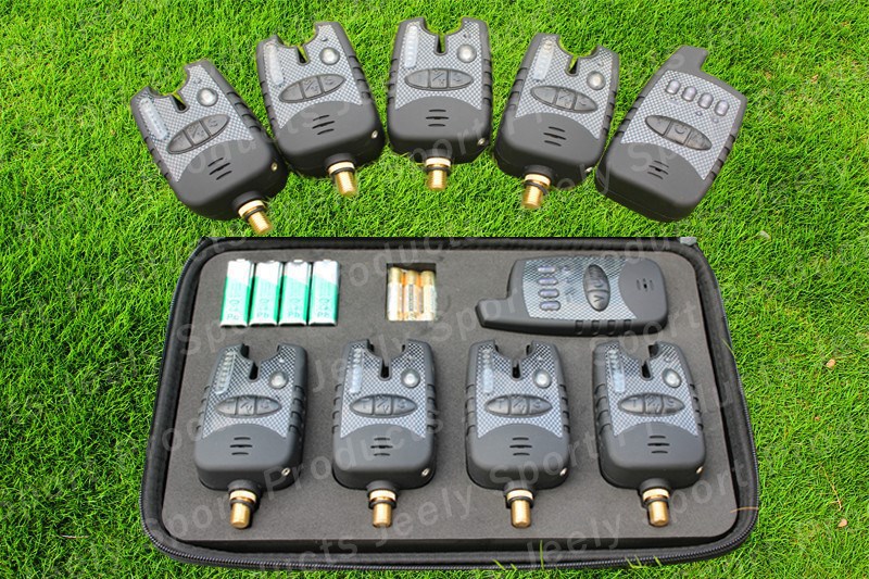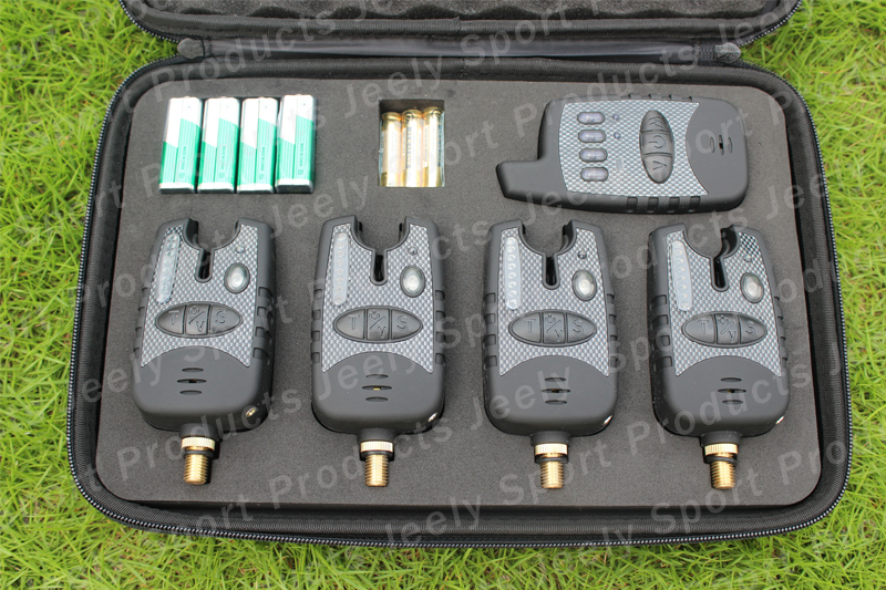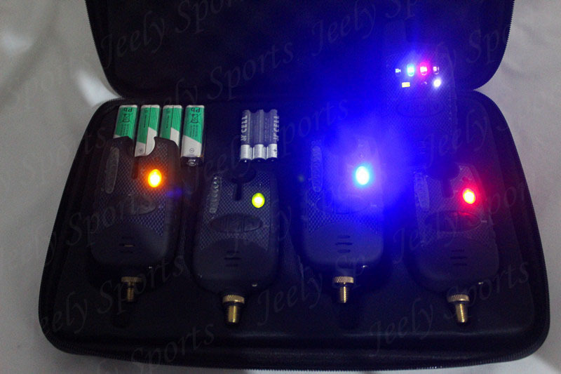 Free delivery 4SETS/LOT Europe Most desirable JY-38 Water-resistant Instant 8LED Indication Carp Fishing Chunk Alarm Set (4 alarms+1 receiver)