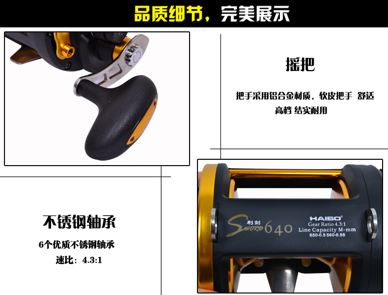 Haibo Sword 640 four.3:1 6 stainless-steel Ball Bearings drum trolling fishing reels,BIG Video game FISHING REEL,Free delivery