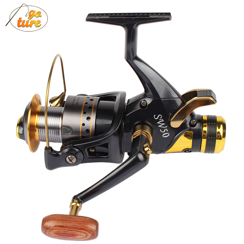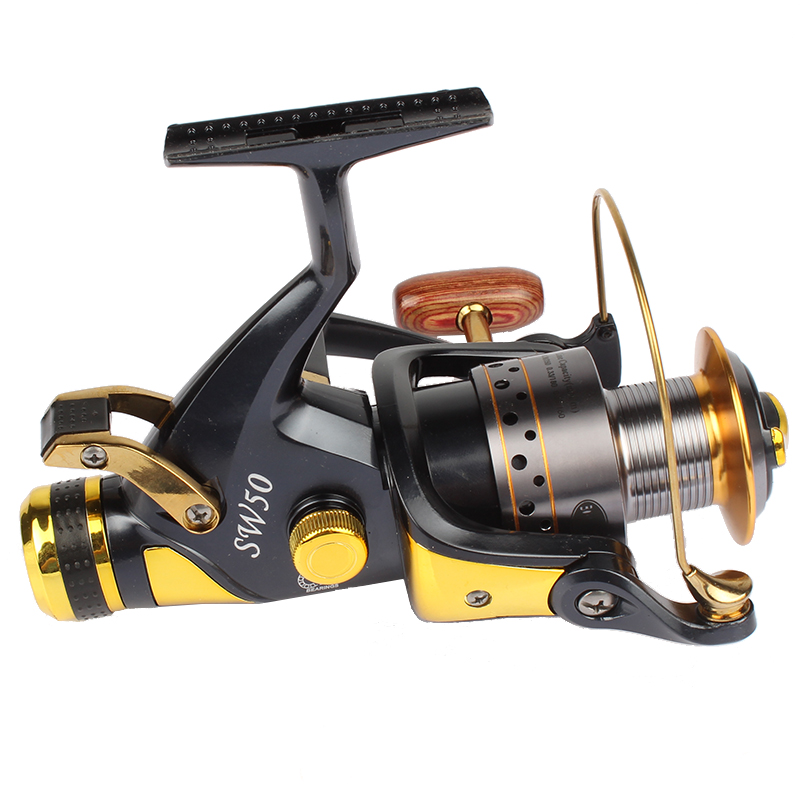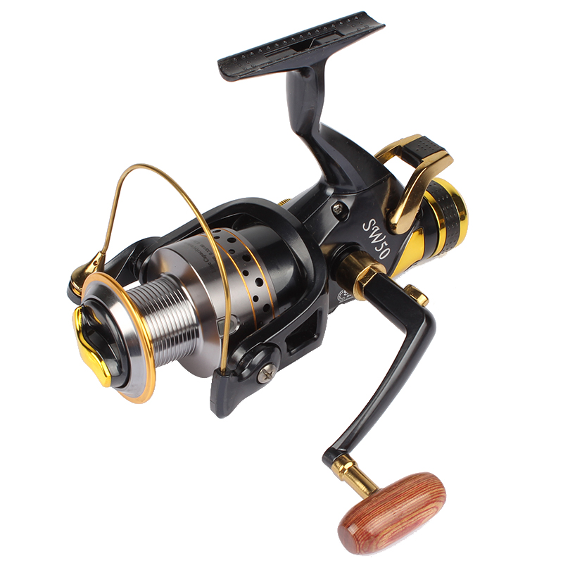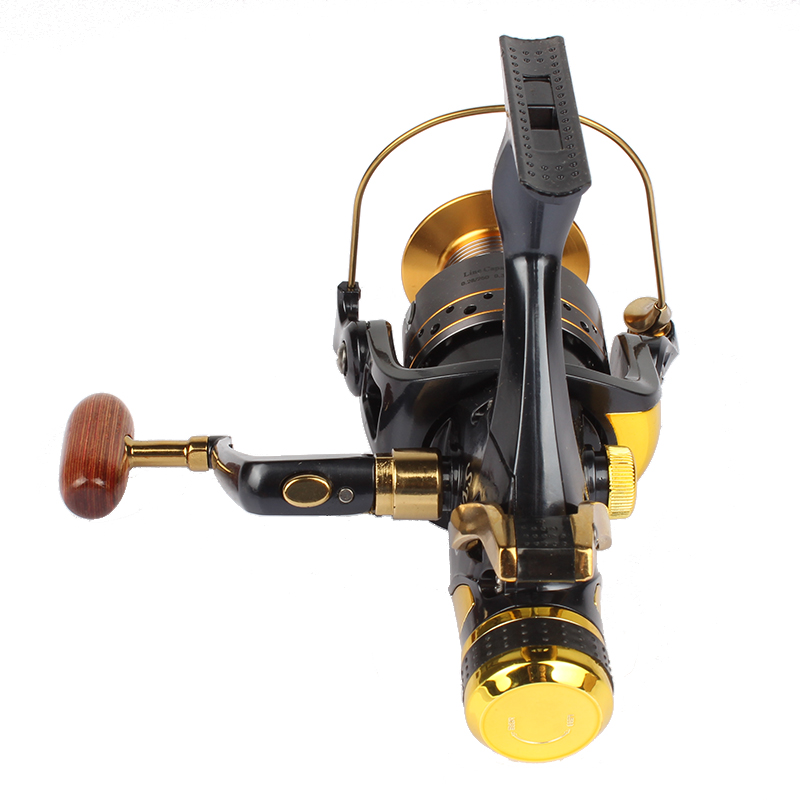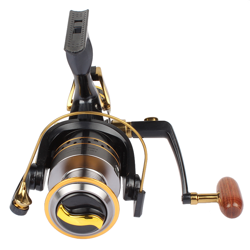 Machined aluminum tackle with a woodem winding knob